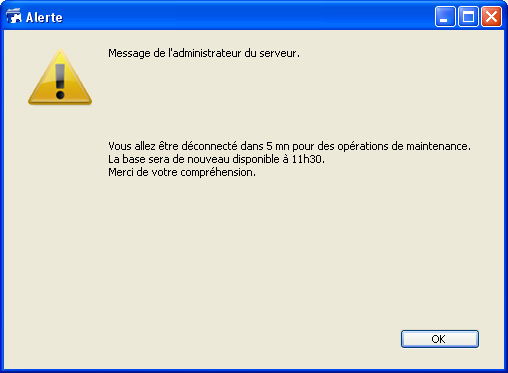 Le message sera affiché sous forme d’alerte sur les postes clients :