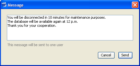 - Enviar mensagem: Este botão permite enviar uma mensagem aos usuários 4D selecionados na janela. Se nenhum usuário 4D está selecionado, o botão se desativa.