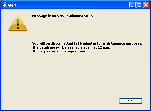 A mensagem será mostrada em forma de alerta nas máquinas clientes: