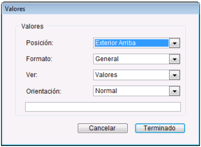 Seleccione Valores en el menú Gráfico. Aparece la caja de diálogo Valores.