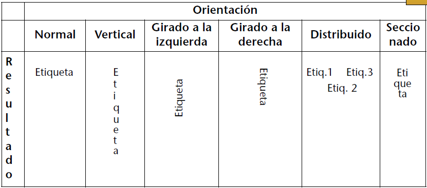 Orientación de las etiquetas Las siguientes orientaciones de etiquetas están disponibles para cada eje: