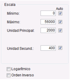 Para cada opción de visualización de la escala, la opción Auto le permite activar el funcionamiento por defecto de 4D Chart. Si quiere utilizar los valores personalizados, recuerde deseleccionar la opción Auto, de lo contrario sus parámetros no se tendrán en cuenta.