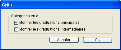 Pour afficher les grilles de l’un des axes, choisissez l’axe approprié dans le sous-menu Grille du menu Graphe. Dans la boîte de dialogue d’affichage de la grille, cliquez sur l’option souhaitée :