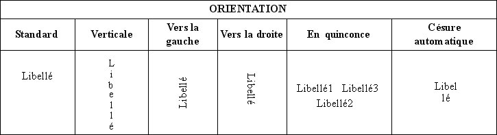 Orientations des libellés Pour chaque axe, les orientations suivantes des libellés sont possibles :