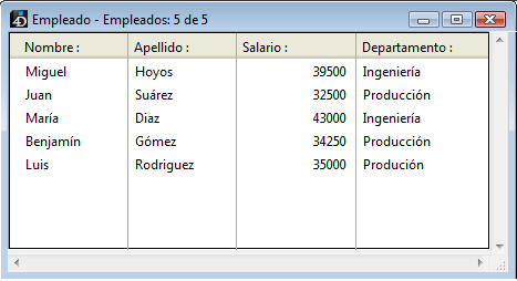 Una vez haya creado los registros en la tabla [Empleados], puede efectuar búsquedas, ordenaciones, impresiones, etc. con los registros. Por ejemplo, vemos los empleados del departamento de Ingeniería.
