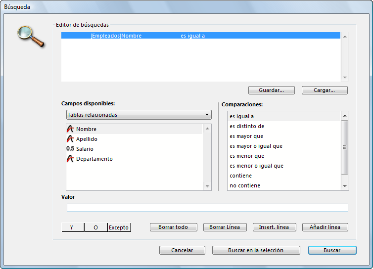 Aparece el editor de búsquedas: