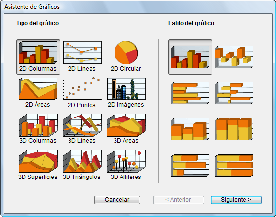 Aparece el asistente de creación de gráficos: