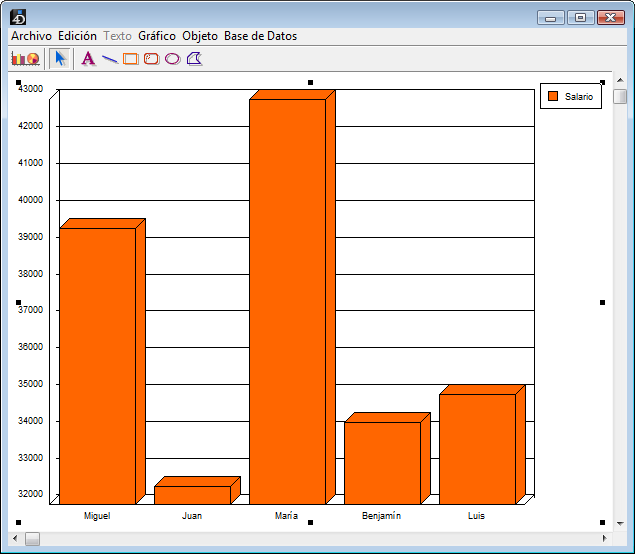 Aparece una ventana de gráfico, mostrando el gráfico creado de acuerdo a sus parámetros.