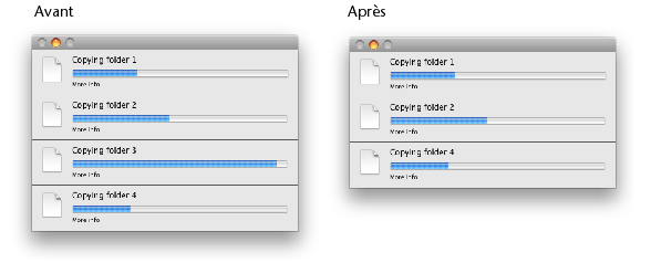 Si une fenêtre de progression était déjà ouverte à l’appel de cette méthode, elle est redimensionnée afin d’afficher une nouvelle barre de progression sous la ou les précédente(s), dans le même process :