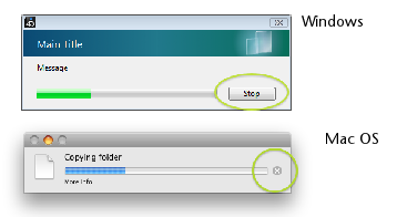 Por defecto, las barras de progreso no tienen botones Stop. Si pasa True en el parámetro boton, se muestra un botón: