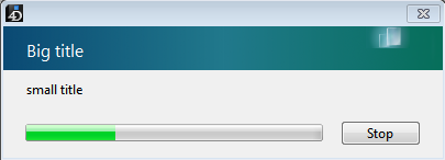 El método Progress SET BUTTON TITLE permite modificar el título del botón Stop de la barra de progreso designada poner el parámetro id. Por defecto, el título de este botón es "Stop":