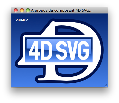 La commande SVG_ABOUT affiche un dialogue avec le logo 4D SVG et indiquant le numéro de version du composant :