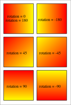 Le paramètre optionnel rotation définit la position et le sens du vecteur de dégradé (cf. exemple).