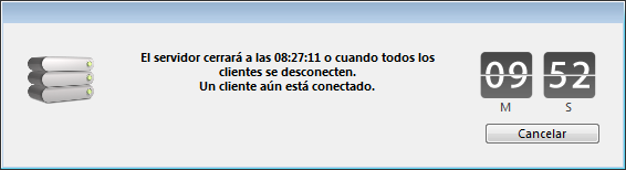 • Si elige la opción "Cerrar el servidor en XX min.", aparece la siguiente ventana: