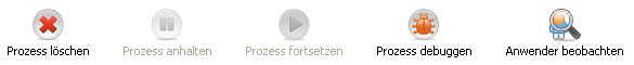 Der untere Bereich enthält fünf Schaltflächen, die bei ausgewählten Prozessen aktiv werden. Beachten Sie jedoch, dass sie nur für Anwen-derprozesse gelten.