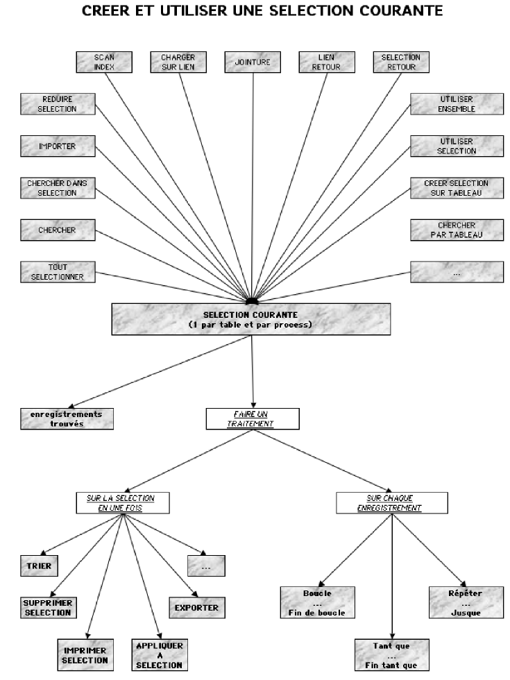 Le schéma ci-dessous représente la manière donc 4D fonctionne, c’est à dire le mode SELECTION-ACTION :