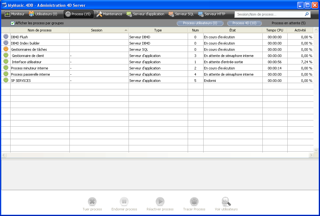 Jusque((Nombre de ticks-$vlStartTicks)>=$1)Rappel : ENDORMIR PROCESS n'a pas d'effet sur le process principal. Si vous utilisez la méthode projet WAITING LOOP, le process attendra pendant le temps défini même si la requête émane du process principal d'un poste client.