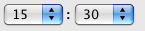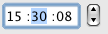 Il est utilisable soit sous la forme de pop up menus (simples ou doubles), soit sous la forme de zones de saisie d’heures au format "hh:mm:ss" associées à un stepper numérique permettant d’augmenter ou de réduire les valeurs d’heures, minutes ou secondes :