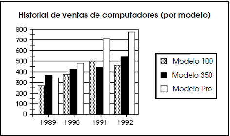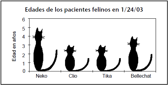 Un gráfico contiene también series de datos (o simplemente, series). Cada categoría se compone de una o más series que fragmentan la información mostrada en el gráfico. En este ejemplo, sólo hay una serie, “ordenadores vendidos”. Sin embargo, imagine que quiere comparar el volumen de ventas de tres modelos de ordenadores, desde 2000 hasta 2003. En este caso, cada modelo de ordenador se convierte en una serie diferente en la gráfica. Todas las series comparten las mismas categorías (en este caso, los años: desde 2000 hasta 2003), pero tienen sus propios valores.