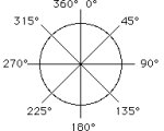 Cada punto en un diagrama polar se traza utilizando un campo eje Z para especificar el ángulo en grados y un segundo campo eje Z para especificar la distancia desde centro.