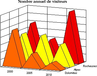 C’est une variante des graphes en colonnes 3D. Comme eux, ils permettent de comparer une catégorie à une autre, ou une ou plusieurs catégories sur une certaine période.