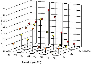 Cette section décrit les types de graphes à trois dimensions. Voici un exemple de graphe à trois dimensions (trois axes) :